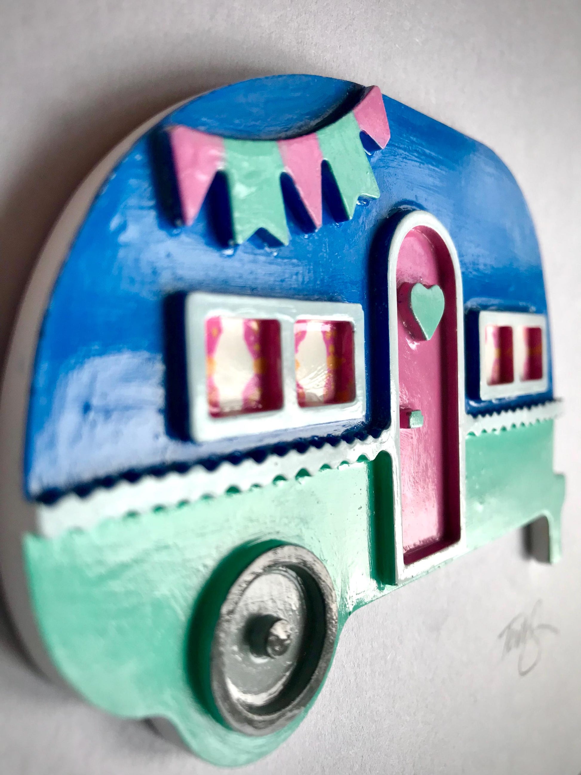Vintage Campervan Wall Art – Unique Hand-Painted 3D Caravan Gift